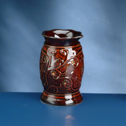 Brown Porcelain Oil Burner with Flower Vine Design Aromatherapy Device Review